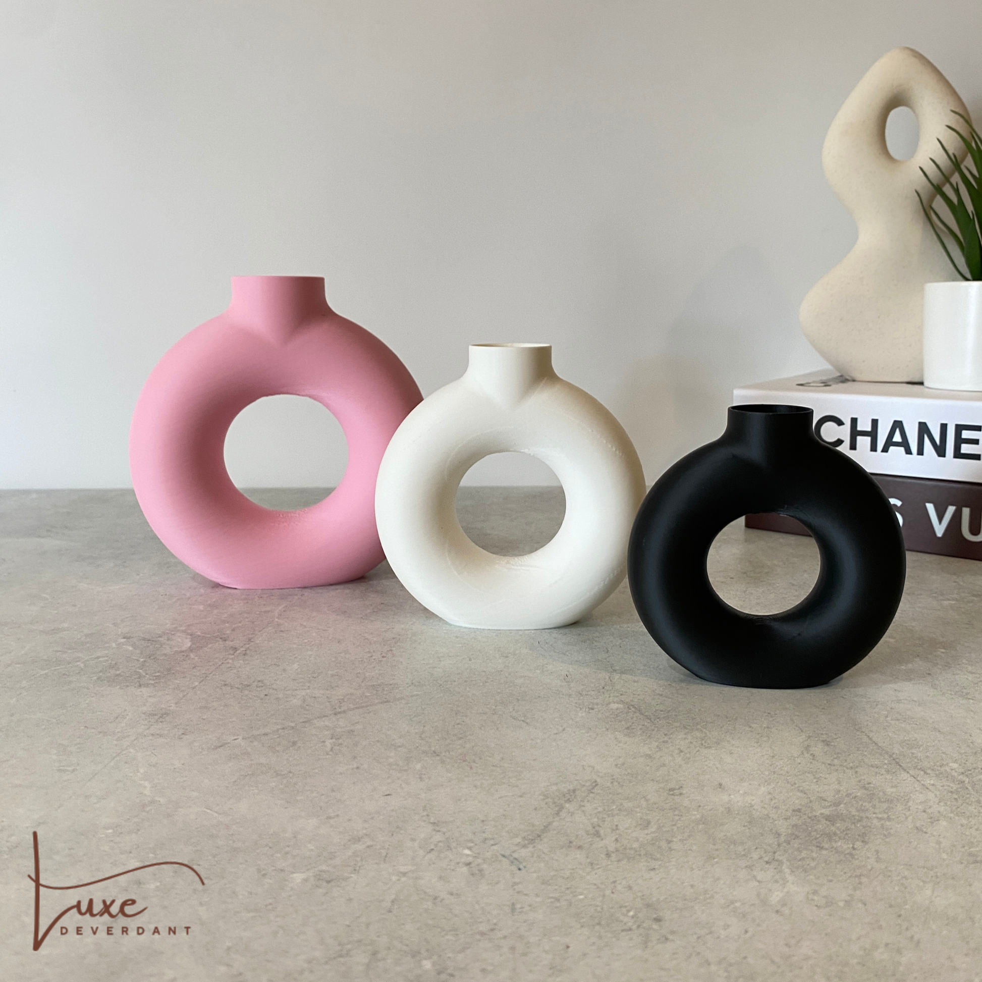 Add a touch of modern elegance to your home with this Nordic style Donut Vase. Its innovative and eye-catching donut shape makes it the perfect centerpiece for any space, from living rooms and offices to entryways and dining tables.